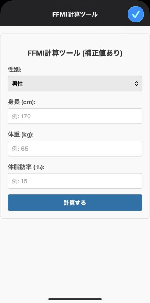 性別を選択して「FFMIを計算する」を押してください