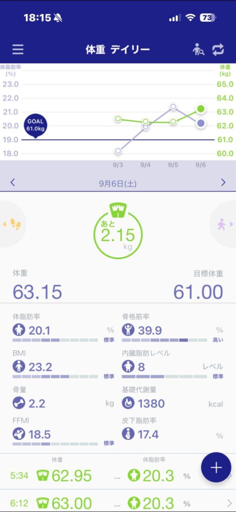 使用した感じですが、Ankerよりも測定が速く快適でした。またWi-Fi接続も簡単にできました。アプリの測定内容は、体重、骨格筋率、BMI、内臓脂肪レベル、骨量、基礎代謝量、FFMI、皮下脂肪率です。FFMIを表示してくれるのは面白いですね。もちろんスマホのスマホのヘルスケアデータと連携することが可能です。