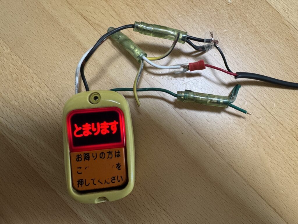 動作は、降車ボタンを押すとLEDが点灯、リセットボタンを押すと消灯します。