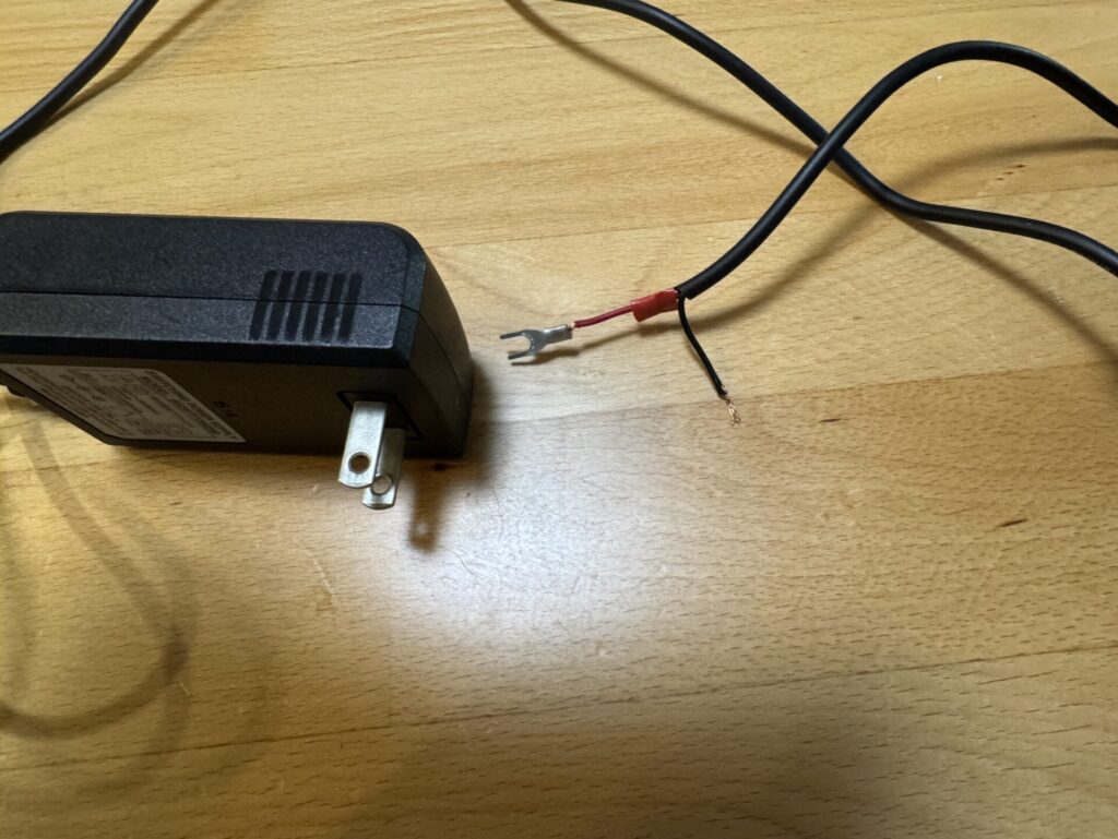 まずは、LEDの確認電源の+(プラス)とLED白線を接続し、電源の-(マイナス)とGND黒線を接続。LEDが点灯することを確認。