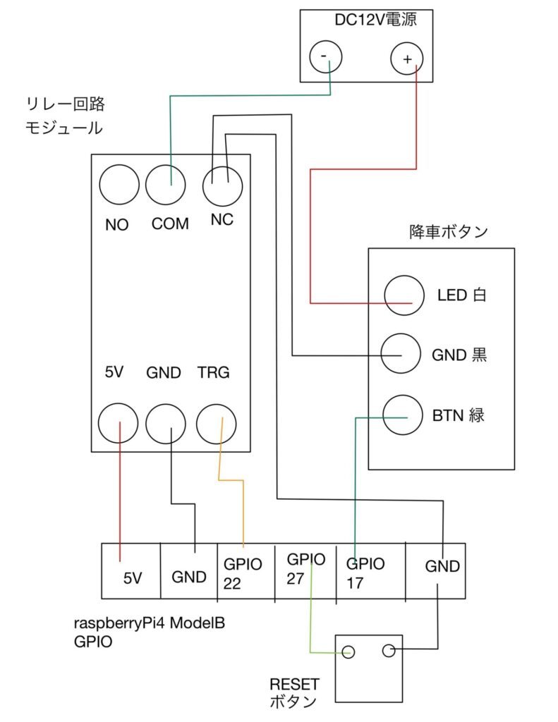 | GPIO17 | BTN(降車ボタン 緑線) |
