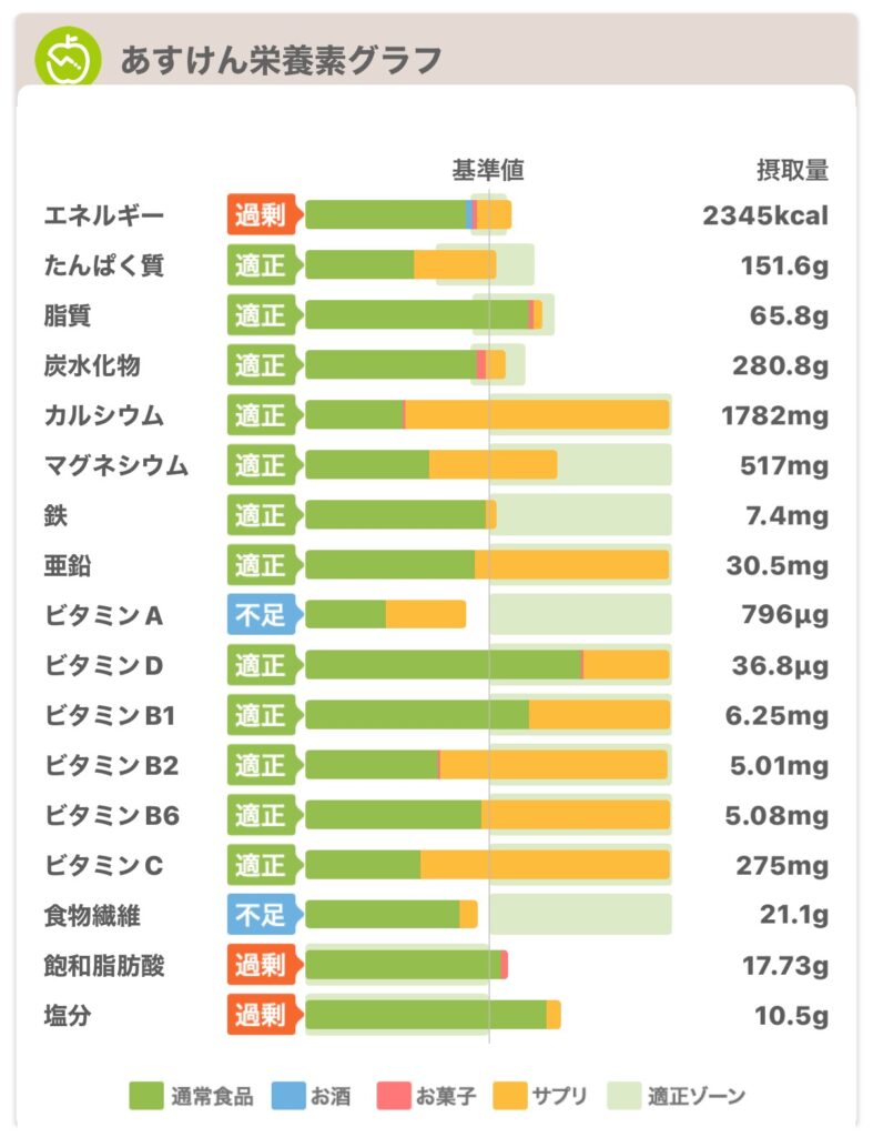 バルクアップに必要な栄養素を確保できているかを確認。